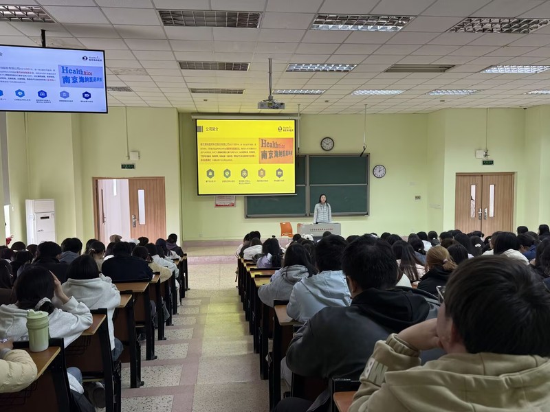 为推进学院高水平专业建设,深化产教融合,提升人才培养质量,进一步拓宽学生的实习与就业渠道。3月24日下午,药学院在教学楼B318举办了校企合作单位“订单班”校园宣讲活动。邀请了南京海纳制药进行宣讲,2024级220余名同学参加了宣讲会。宣讲会上,企业负责人向同学们介绍了公司的概况、职业发展方向、人员需求情况、公司的晋升空间、员工福利及工作环境,并针对同学们提出的相关问题进行回答。